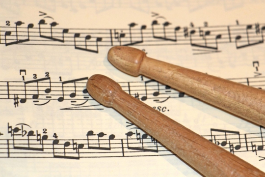 Ausnahme: Klavier, Schlag·zeug, Key·board, Hack·brett, Harfe – diese Instrumente stehen bereit.